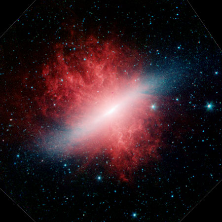 "We started this work motivated to test the PAH hypothesis and, if born out, provide the spectra needed to exploit the PAH model and develop it into a new probe of the wide variety and vast number of astronomical objects that show the PAH emission spectrum. This field has exploded far beyond my wildest dreams and, in my opinion, this spectral collection is what broke the spell that astrochemistry was limited to simple species and marginal for astrophysics." Allamandola said. "Thanks to the incredible sensitivity of the Spitzer Space Telescope, the PAH signature is seen across the Universe, removing any doubt of the importance of these species. There is even evidence for PAH emission from very distant galaxies at redshifts of 3, indicating these complex organic molecules were produced only a few billion years after the Big Bang. This means that enough carbon was available to drive a rich organic chemistry far earlier in the history of the Universe than people thought only a few years ago. When you consider that the discovery of simple, garden variety molecules like ammonia (NH3), formaldehyde (H2CO) and carbon monoxide (CO) in space made headlines in the 60's and 70's, this is incredible. Up till then, space was thought to be chemically barren. If this isn't enough, as shown in the figures of the galaxy, M82, Spitzer has shown there are even PAHs in the space between galaxies! Beyond a doubt, PAHs are an important part of modern astrophysics."